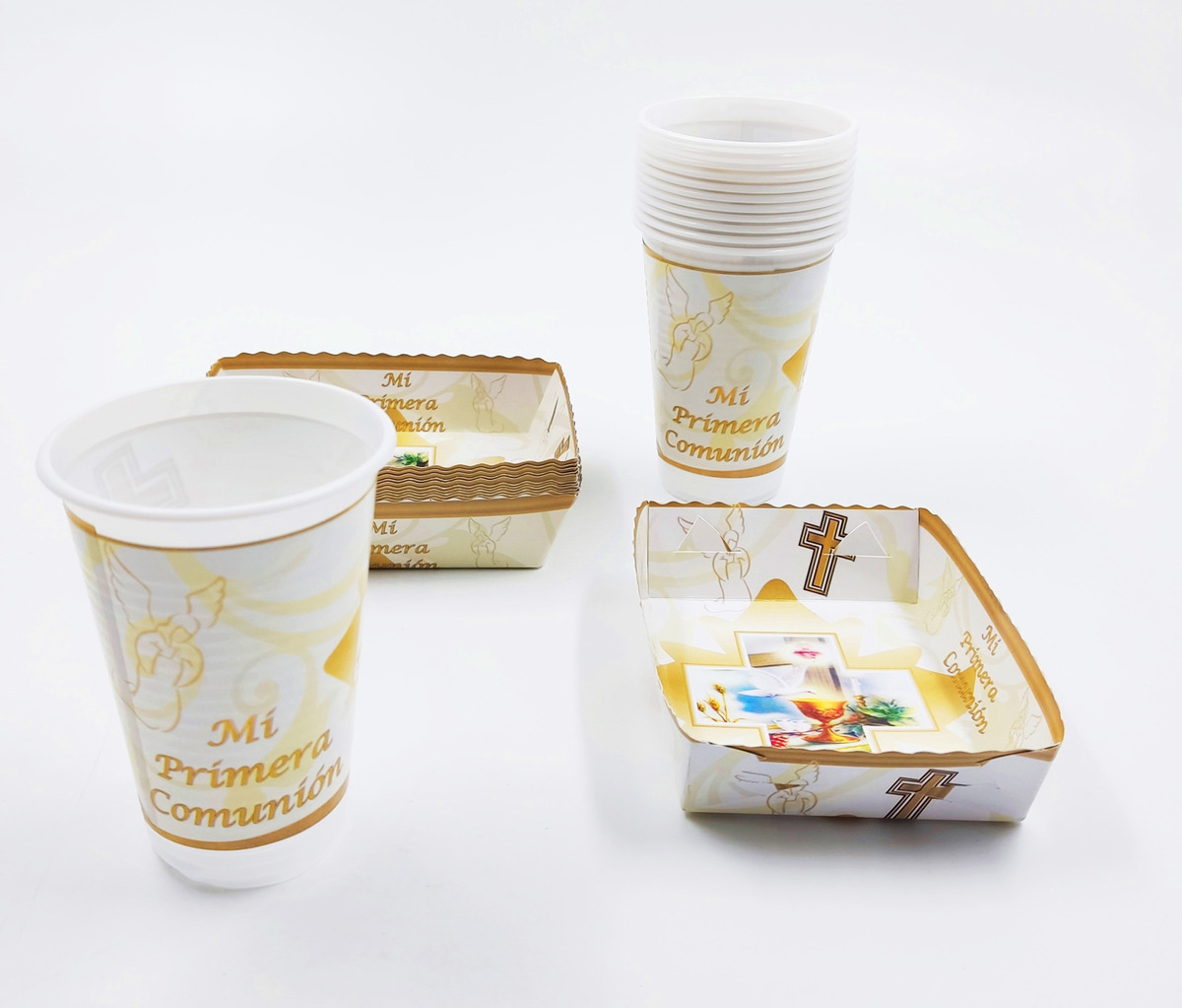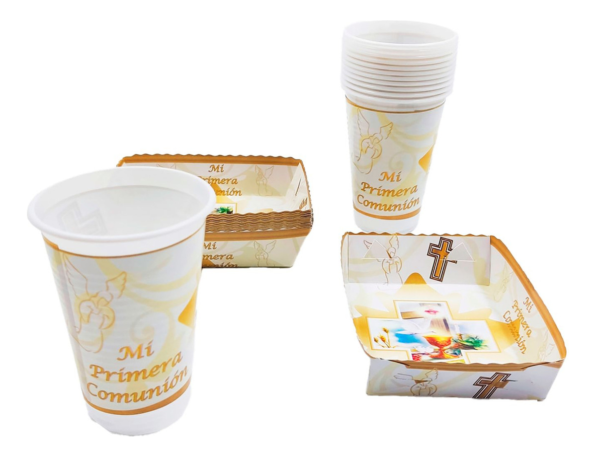 Kit 12 Vasos 12 Platos Decorativos Primera Comunion