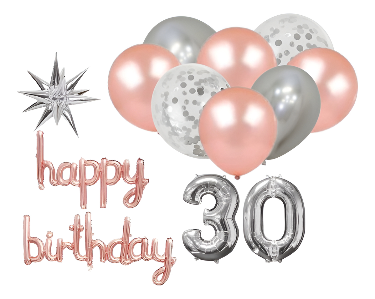 -Globo tipo letrero cursivo Happy Birthday Oro Rosa