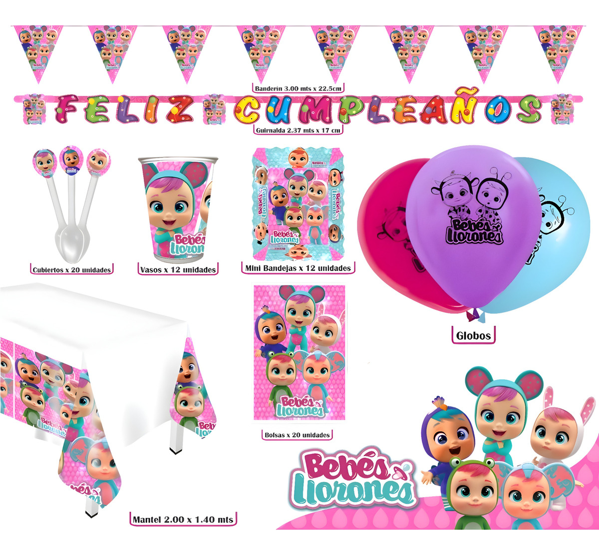 • 1 Letras de Feliz Cumpleaños 2.37 mts x 17 cms.