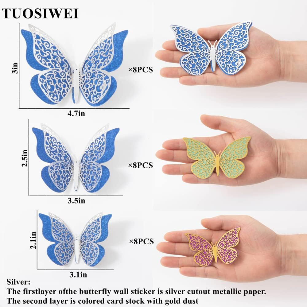4 mariposas de 8.5cm x 11.8cm4 mariposas de 7cm x 9.8 CM4 mariposas de 5.5cm x 7.7cm12 cuadritos adhesivos para pegar mariposas