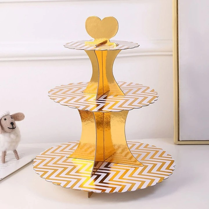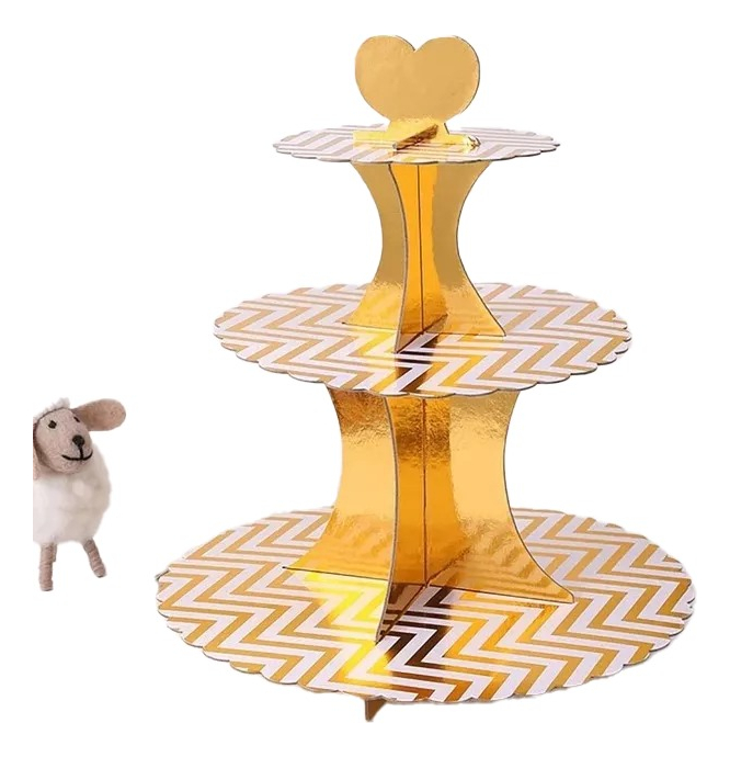 Torre Base Para Cupcakes 3 Niveles Zigzag Dorado