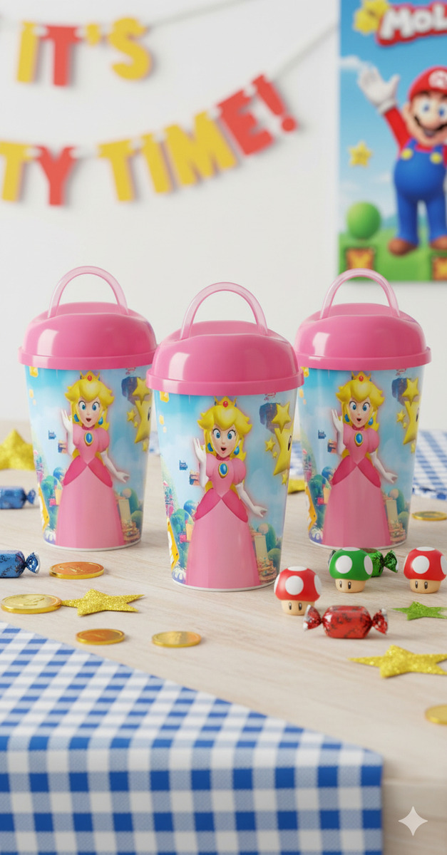 -12 Vasos Pitillo temáticos de Princesa Peach, perfecto para fiesta infantil, cumpleaños, etc.